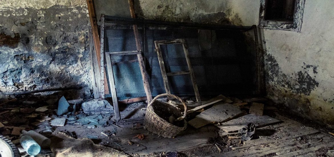 The track led me down onto the village lanes, where empty houses stood in a row. Some were still tightly padlocked, perhaps still used as storage by former villagers, while others were in a rather advanced state of decay. Doors were left open, furnishings were ripped out and scattered on the floor, and a thick layer of dust was caked on everything. I peeked into them as I walked, thinking perhaps that the boy, frightened, had decided to hide indoors. Some houses looked as if the slightest breeze could take them down, but others seemed much more solidly built. I invited myself inside a few of them, while trying to persuade myself that I was intruding not to satisfy my own curiosity but rather, more nobly, to help find the missing child.